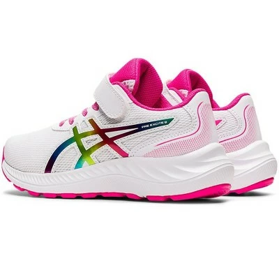 The PRE-EXCITE™ 9 PS (Pre-School) shoe is formed with energized design details. This shoe offers high-quality breathability with fewer layers on the upper to reduce irritation in the forefoot. Meanwhile, the ASICS Stripes on the sides are rendered with a rainbow overlay for an eye-catching look. We’ve also integrated a CUB MATCH™ sockliner that uses a tiger graphic to help kids recognize the left shoe from the right shoe. Lastly, durable properties, like the toe rubber stitching and solid rubber outsole are designed to expand the shoe’s lifespan.