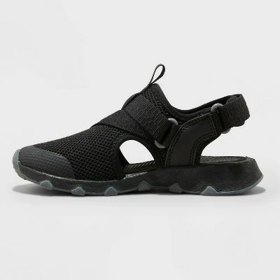 Boys’ sandals are designed to keep their feet cool and comfortable. The lightweight material with insole and lining provide flexible comfort, while the open heel and sides provide breathability. The closed-toe design protects their feet, and the quarter strap with a hook-and-loop closure keeps the sandals from falling off.