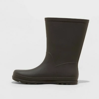 With these simple and versatile Vincent Boots from Cat & Jack™, he can finish off any rainy day outfit with a cute and casual option to keep his feet cozy and dry. These rain boots are designed with an 8-inch tall shaft with a 13.5-inch circumference, giving good coverage that lets him tuck in the bottom of his pants so cuffs stay dry and away from puddles. The plastic upper in a single solid color makes for a look that’s easy to pair with tons of outfits, while a leather and plastic sole with no heel provides a comfy feel for all-day wear.