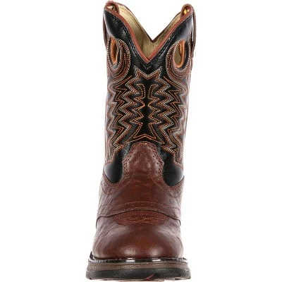 Your little rocker needs Lil’ DurangoĀ® Little Kid Saddle Western Boot. Standing at 8 inches tall and a 12 inch calf circumference (shaft height and circumference may vary by size), these little cowboy boots are perfect for your little one. They’re comfortable and sturdy enough to handle your tough young one.The brown and black boots have a Rocker heel 1 1/8 inch and a u shaped toe. The comfortable kids boots have mesh lining, and a cushion flex insole for comfort. They also have a rolled shank area for arch support.The little boy boots have a single row welt stitch, a synthetic leather-like upper and a rubber unit outsole, to ensure your little one can be tough in them.Be sure to get your little one Lil’ DurangoĀ® Little Kid Saddle Western Boot.