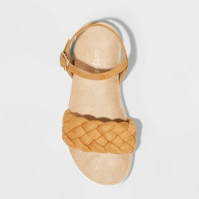 Revamp your fashionista’s footwear collection with the unique style of these Amelia Footbed Sandals from Cat & Jack™. Showcasing a woven single strap, these footbed sandals for girls feature an open design to provide breathable comfort to your kiddo’s feet. The contoured footbed provides lasting support for comfy walking. Easy to close and secure with the buckle closure, these woven strap sandals adds a dose of style to her footwear collection.