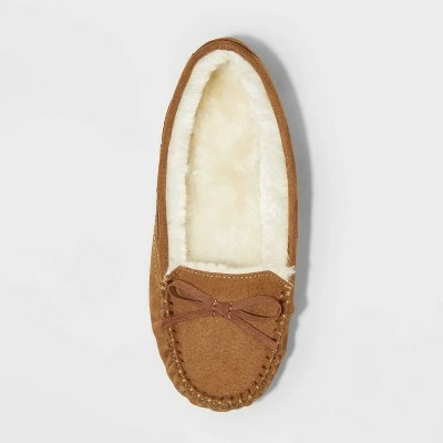 She’ll be sure to love the cozy comfort of these Cadi Moccasin Slippers from Cat & Jack™. The moccasin-style slippers make a go-to pick for both indoor and outdoor use. The closed-toe slippers feature a tie accent on the front with cinched detailing to add a sweet touch to her look. Plus, faux fur lining with a relaxed moccasin fit keeps her toes toasty and her feet comfy. Have her pair these slippers with everything from pajamas to casual clothing for cute coziness any time of the day.