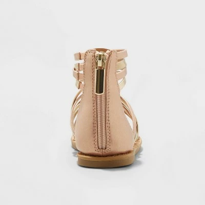 Spruce up her party look by accessorizing with these Dion Metallic Gladiator Ankle Strap Sandals from Cat & Jack™. Showcasing a crisscross design with metallic straps and an open toe, these gladiator sandals offer breathable comfort and fun style. The ankle length makes them perfect to pair with all her dresses. And with the back zipper closure, she’ll get the right fit.