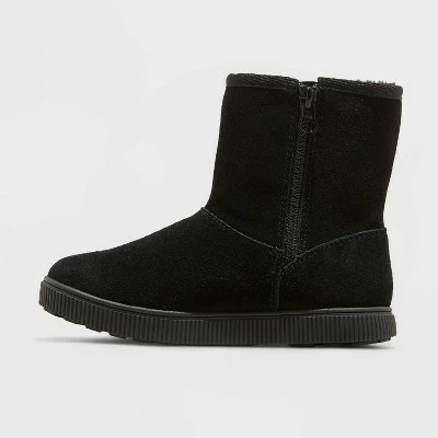 She’ll stay cute and cozy all winter long slipping on these Hanna Zipper Slip-On Winter Shearling Style Boots from Cat & Jack™ with her go-to cold weather outfits. Boasting a soft construction and a 5.5-inch shaft height that keeps ankles covered, these winter boots are designed with side zippers so they’re super quick and easy for her to get on and off. The faux fur lining provides a cute look while keeping toes toasty, and offers a versatile design that’s easy to pair with outfits from jeans and tees to dresses and tights.