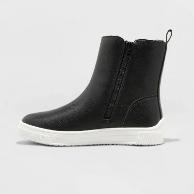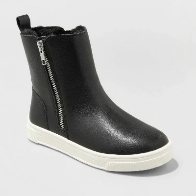 Get your kiddo ready for school with the Girls’ Nikita Slip-On Zipper Booties from Cat & Jack™ in black. These adorable booties make the perfect addition to your kiddo’s fall wardrobe, whether it’s for conquering another day at school in style, or for taking cute family pictures at the apple orchard. The classic black color with white details matches just about any outfit too. A soft interior lining provides coziness and comfort, while the slip-on design and zipper closure make for easy on/off.