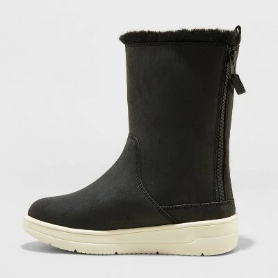 She’ll love finishing off her cool weather outfits with a look as fashionable as it is functional wearing these Olive Double-Zipper Slip-On Winter Shearling Style Boots from Cat & Jack™. Designed with a tall 7-inch shaft height that’s great for tucking skinny jeans into or wearing over leggings and tights, these stylish winter boots also boast a shearling style lining for a sweet look that helps keep toes toasty all day. A double zipper at the back of the boot provides simple on and off so she can quickly slip these boots on as she heads out the door, and remove them easily after a fun day of school or play.