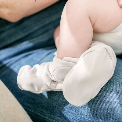 Never lose another sock. A super-soft organic baby boot that is adjustable and stays on no matter what. Featuring our two-part adjustable closure system that remains secure on your baby’s feet and grows with them. 6m+ has extra grip on soles for those first wobbly (and adorable) steps.