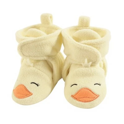 Hudson Baby fleece booties are comfortable, cozy baby booties made with fleece material that will keep your little one’s feet warm and comfortable. Our booties wrap around your baby’s foot and fasten in the front with a velcro closure, so they are easy to put on, fasten and stay on. Our fleece booties feature non-skid soles to prevent your baby from slipping and falling when they start to walk and run. Hudson Baby Unisex Baby and Toddler Cozy Fleece Booties, Yellow Duck is a great baby essentials set for your little one.