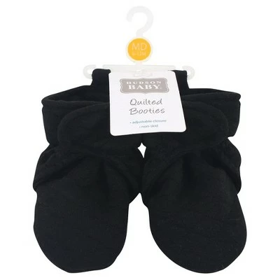 Hudson Baby quilted booties are comfortable, cozy baby booties made with quilted cotton material that will keep your little one’s feet warm and comfortable. Our booties wrap around your baby’s foot and fasten in the front with a velcro closure, so they are easy to put on, fasten and stay on. Our quilted booties feature non-skid soles to prevent your baby from slipping and falling when they start to walk and run. Hudson Baby Unisex Baby and Toddler Quilted Booties, Black is a great baby essentials set for your little one.