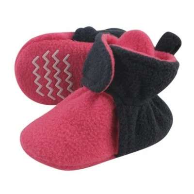 Hudson Baby fleece booties are comfortable, cozy baby booties made with fleece material that will keep your little one’s feet warm and comfortable. Our booties wrap around your baby’s foot and fasten in the front with a velcro closure, so they are easy to put on, fasten and stay on. Our fleece booties feature non-skid soles to prevent your baby from slipping and falling when they start to walk and run. Hudson Baby Infant and Toddler Girl Cozy Fleece Booties, Dark Pink Navy is a great baby essentials set for your little one.