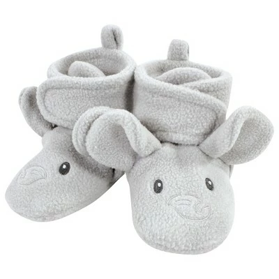 Hudson Baby Unisex Baby Animal Fleece Booties 2-Pack, Gray Elephant Giraffe