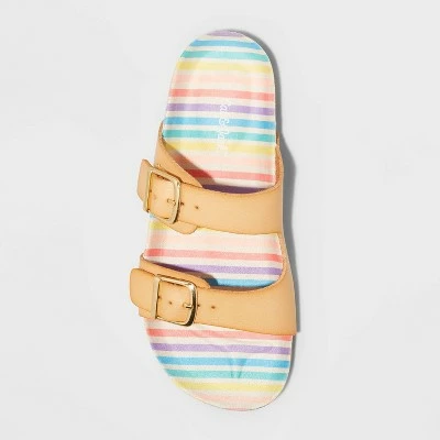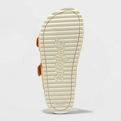 Round out their footwear collection with these Drew Slip-On Footbed Sandals from Cat & Jack™. Designed with a soft footbed for comfy wear, these slip-on sandals feature an open toe to offer them breezy comfort, making them a great pick for the warmer weather. The double band on top with buckle closure helps them find a customizable fit. Have them pair with a variety of casualwear ensembles for cool styling.