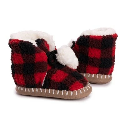 Cuddle up with the fam in MUK LUKSĀ® Kid’s Family Sherpa Slipper Booties. This kid-friendly pull-on style bootie slipper features cozy faux fur lining to keep tiny toes warm and non-skid PVC dots to keep little ones safe on slick floors. Wipe with damp cloth. Do not bleach. Dry flat. Imported. – 100% Polyester Sueded Tricot Sole with Non-Skid PVC Dots- 100% Polyester Faux Fur Knit Upper- 100% Polyester Faux Fur Lining- 100% Acrylic Tassel- Pom Detail- Kid’s Sizes S(8-10), M(11-13), L(1-3)