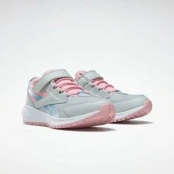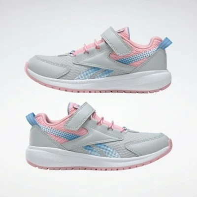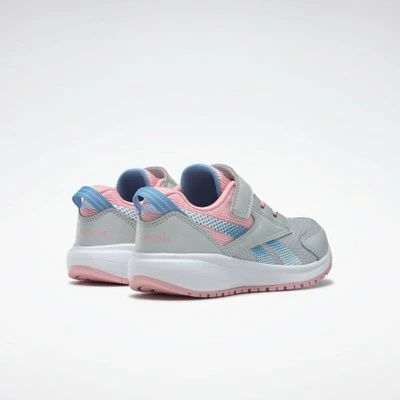 When she straps on these girls’ Reebok shoes, she’ll be ready to tackle any adventure that comes her way. The mixed-material upper has signature sport style that pairs up with any outfit. An EVA midsole cushions her feet from the first step of the day to the last. The elastic lace design makes it easy for her to pull them on and get out the door.