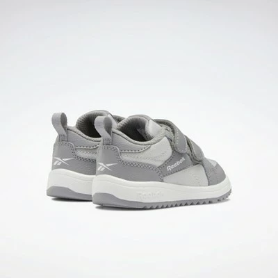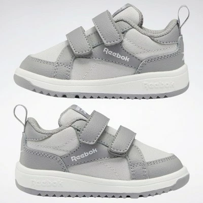 These Weebok by Reebok shoes keep toddlers moving and grooving. Two hook-and-loop straps make quick changes easy. Comfort, mobility and style come together to support your little one making forward progress.
