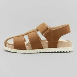 Make sure your little one moves in total comfort during sunny days in these Sandals from Cat & Jack™. These medium-width sandals feature a strappy design with a hook-and-loop closure to offer them a secure fit. Designed with a non-marking outsole, these no-heel sandals feature an airy design for breathable wear, while a faux, rough-out leather-like upper and footbed make them a great pairing with a variety of their summertime ensembles.