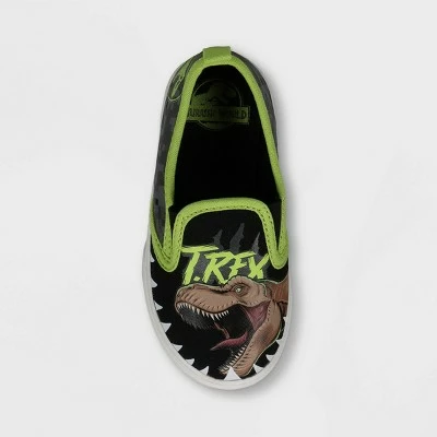 Make sure your little one walks in absolute comfort throughout the day with these Toddler Boys’ Jurassic World Twin Gore Slip-On Apparel Sneakers in black and lime green. Featuring a breathable cotton-blend upper with soft lining, these toddler boys’ sneakers feature a cool looking T-Rex design on the top. Additionally, a closed-toe construction provides a snug, secure fit. Whether you’re getting ready for a trip to the park or he’s just kicking around in the backyard, these sneakers are a perfect pick.