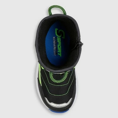 Stride in cool colorful style and walkable comfort rain or shine with the S Sport by Skechers Zuko boot. This sneaker boot features a water-resistant woven fabric and synthetic upper with sculpted geo accents, contrast color detail in a sporty casual design with a side zip closure and shock-absorbing midsole.