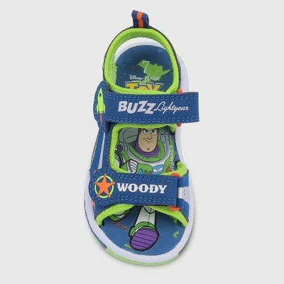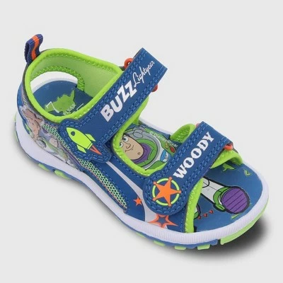 Finish off your toddler’s cool looks with these Toddler Boys’ Toy Story Adventure Sandals – Navy Blue. These toddler boys’ sandals feature a no heel soft footbed construction along with an open-toe design to provide breathable comfort to his feet. The adjustable hook-and-loop closure helps him get the right fit. He’ll have fun pairing them with anything from jeans to joggers and more to get ready in casual style.