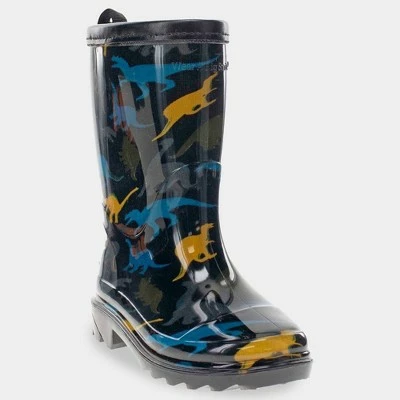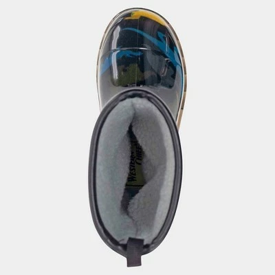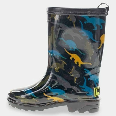 Living in the Land of the lost dinosaurs! Step back into the Jurassic age in waterproof boots that light-up with every step, making them fun and an added safety feature for outdoor play. Vegan faux fur lined gives extra cozy warmth for those chillier adventures. Classic black base with bright pops of dinosaurs cover this playful kids boot. Sawtooth soles for extra grip.