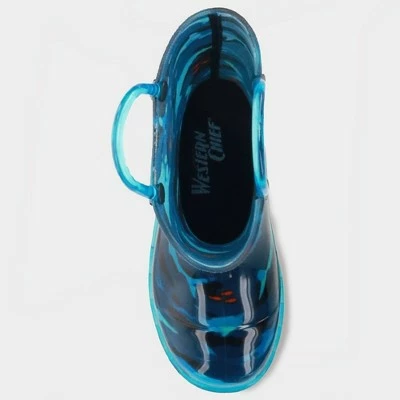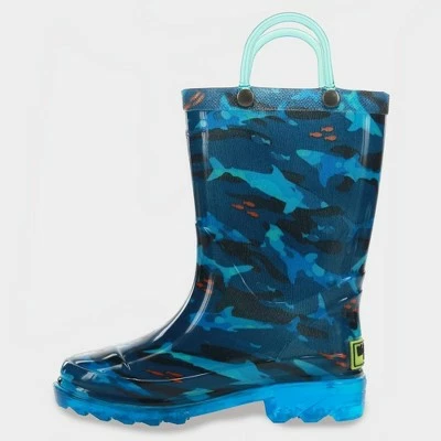 The Shark Blaze Boots from Western Chief ensure your little tyke is ready for fun times outdoors even when it rains. Made from a water-resistant material and featuring a closed-toe design, these toddler boys’ mid-calf rain boots ensure his feet stay cozy and dry, plus, they’re designed with two pull handles for easy dressing. Featuring allover shark prints on a blue background to excite him, they’re designed with integrated colorful lights at the sides that flicker with each step he takes for fun flair during outdoor play.