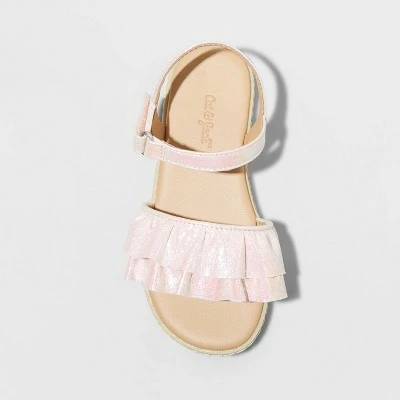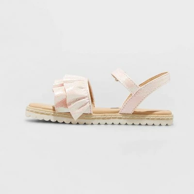 Lend texture and charming style to your toddler’s footwear collection with these Abigail Ankle Strap Sandals from Cat & Jack™. These toddler girls’ sandals feature a double layer of ruffles on the single strap for sweet flair. The open design helps provide an airy feel to help her walk in comfort. Easy to close and secure with the hook-and-loop closure, these ankle-strap sandals complement most of her dresses for a dressed-up look that works well for all occasions.