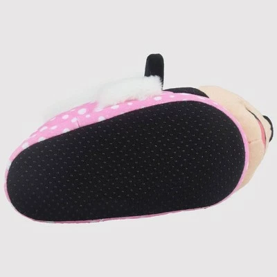 She’ll kick back in sparkly style with the Toddler Girls’ Disney Minnie Mouse Slippers – Pink. These closed-toe slippers for girls are designed with polyester trimmed uppers and features Minnie Mouse. The house slippers boast a coordinating polyester lining that will snuggle her feet in plush comfort, while the stipple-dot outer soles provide better traction on the floor for a safer grip as she hangs around at home.