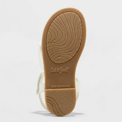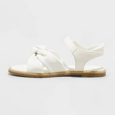 Finish off your little one’s looks with the simple and cute style of these Eleanor Ankle Strap Sandals from Cat & Jack™. These white sandals for toddler girls feature a knotted design at front for a sweet look. The open design helps provide an airy feel to help her walk in comfort. Easy to close and secure with the hook-and-loop closure, these ankle-strap sandals pair nicely with her dresses for a dressed up look.