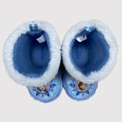 She’ll kick back in sparkly style with the Toddler Girls’ Frozen Bootie Slippers – Blue. These closed-toe slippers for girls are designed with polyester trimmed uppers and embellished with a thick layer of flip sequins for a fun touch of color-changing shine. The house slippers boast a coordinating polyester lining that will snuggle her feet in plush comfort, while the stipple-dot outer soles provide better traction on the floor for a safer grip as she hangs around at home.