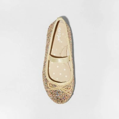 - Toddler girls’ glitter ballet flats with bow accents add an instant style update to her closet