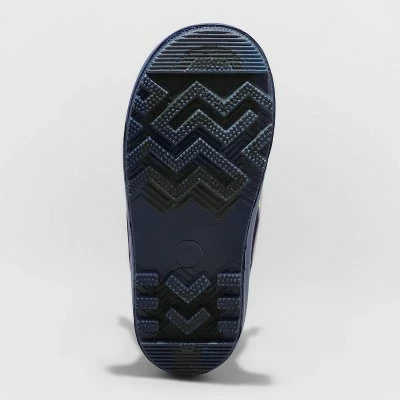 Cheer up your favorite gal during rainy days by gearing her up for the outdoors in these Nava Rain Boots from Cat & Jack™. Made from waterproof materials with 100% rubber uppers and featuring a closed-toe design to help protect her toes, these toddler girls’ rain boots keep water from getting inside to help keep her feet dry and comfy, while the fabric insole offers her comfy wear. These toddler girls’ mid-calf rain boots feature a flocked outsole, and they’re designed with two pull-on loops for easy dressing. Adorned with allover colorful shooting stars and star graphics on a navy background, they’re sure to add a perfect finishing touch to her rainy weather outfits.
