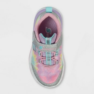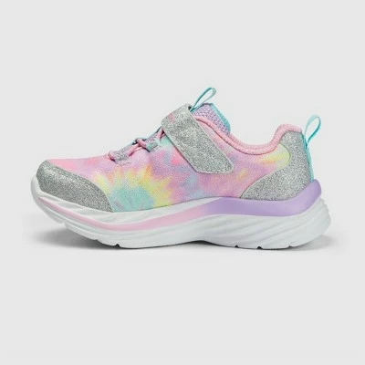 Add a splash of color and shimmering style to your day with comfort wearing S Sport by Skechers Abie. This lightweight slip-on sneaker features a soft tie-dye print mesh fabric upper with synthetic glitter finish overlays, bungee-laced sporty casual sneaker design with hook and loop strap closure and flexible rubber outsole.