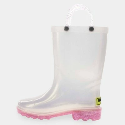 Dreamy glitter swirls of pearlized pale pinks, light lilacs, sky blue and sea foam green. Infused with our highest concentration of our sparkiliest glitter. Waterproof boot soles that light-up with every step, making them fun and an added safety feature for outdoor play. Two pull handles to promote self-dressing. Sawtooth soles for extra grip.